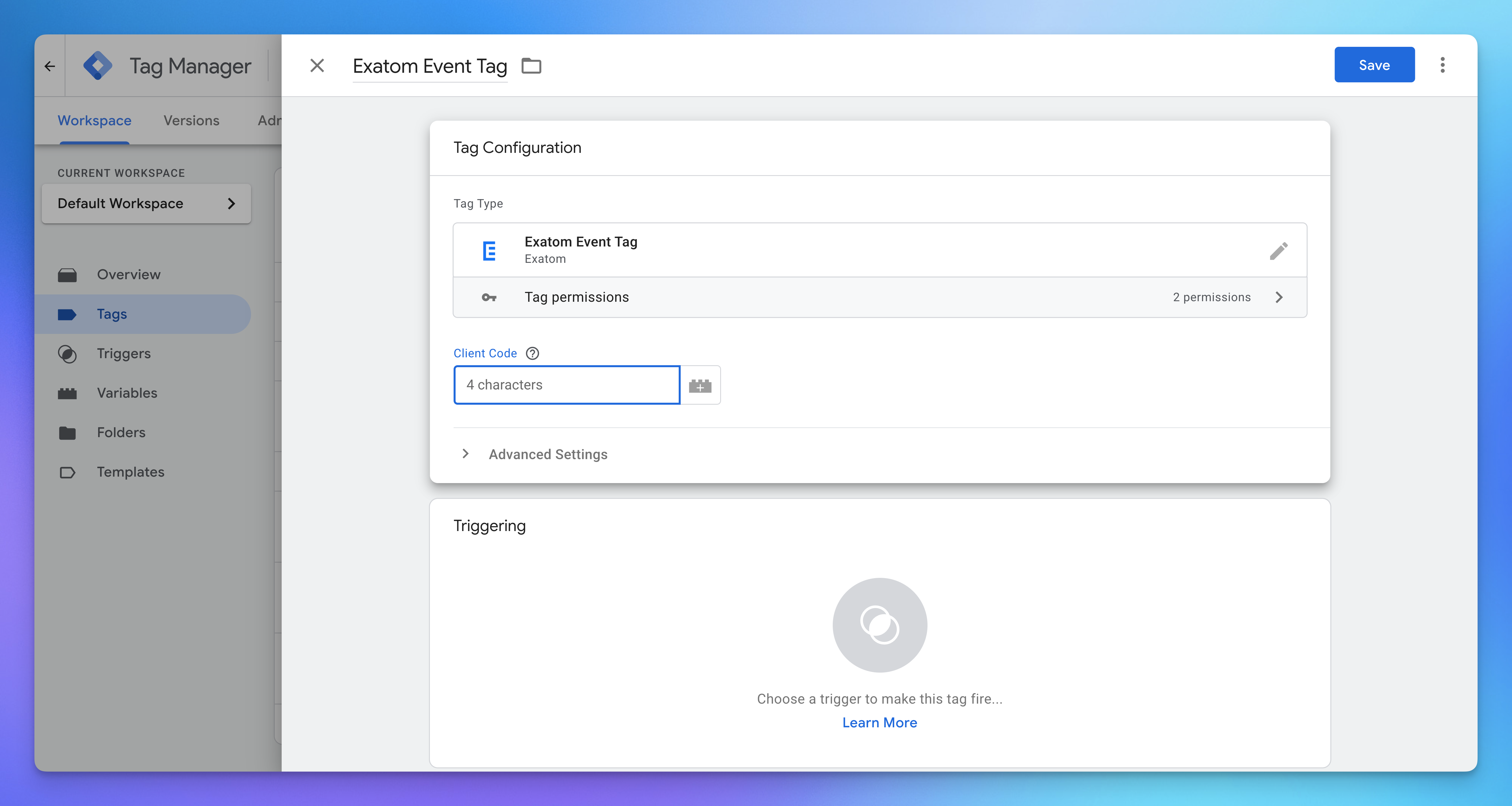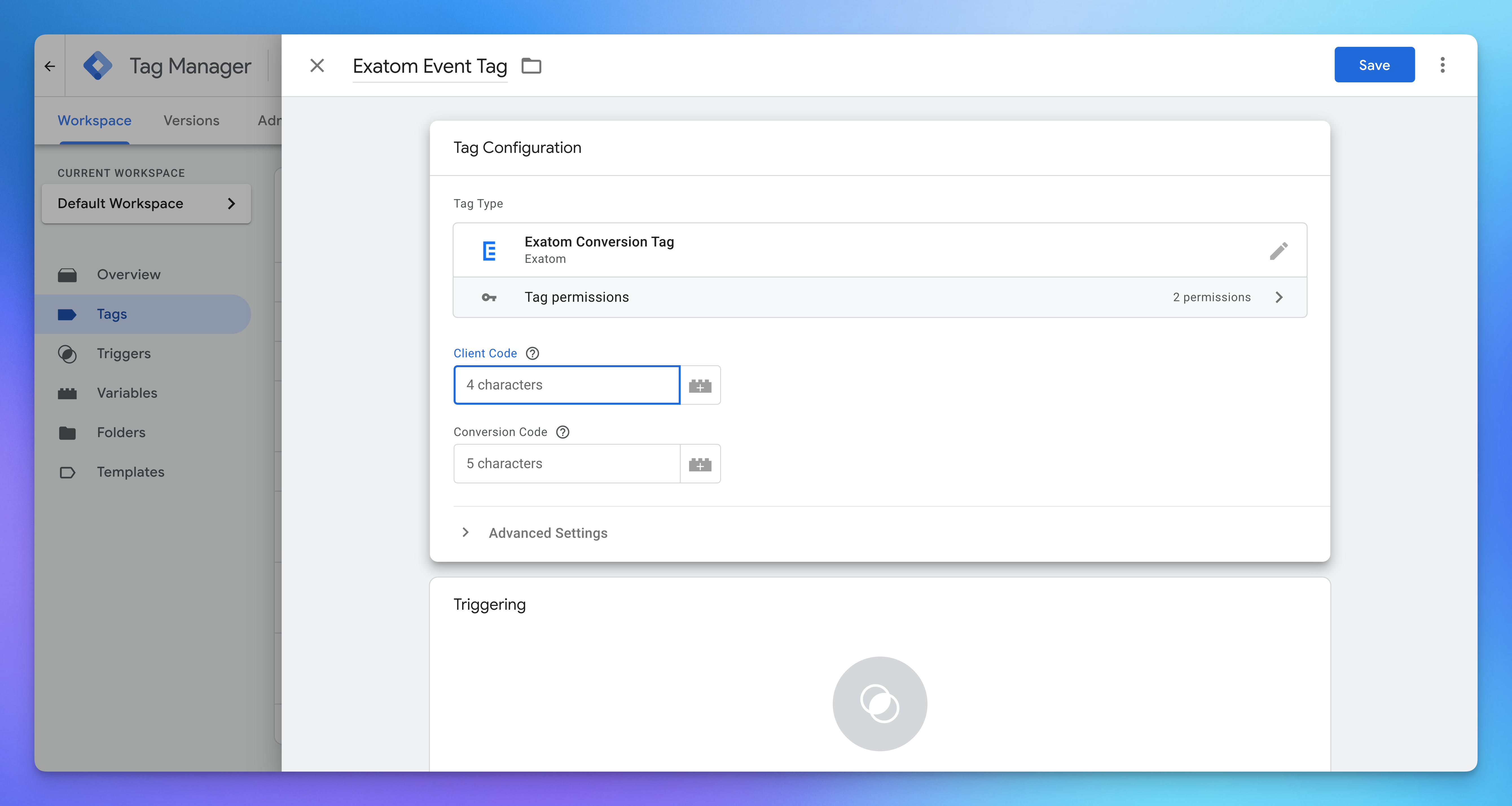 - For the Exatom Event tag: click Triggering → choose “All Pages” for every page.