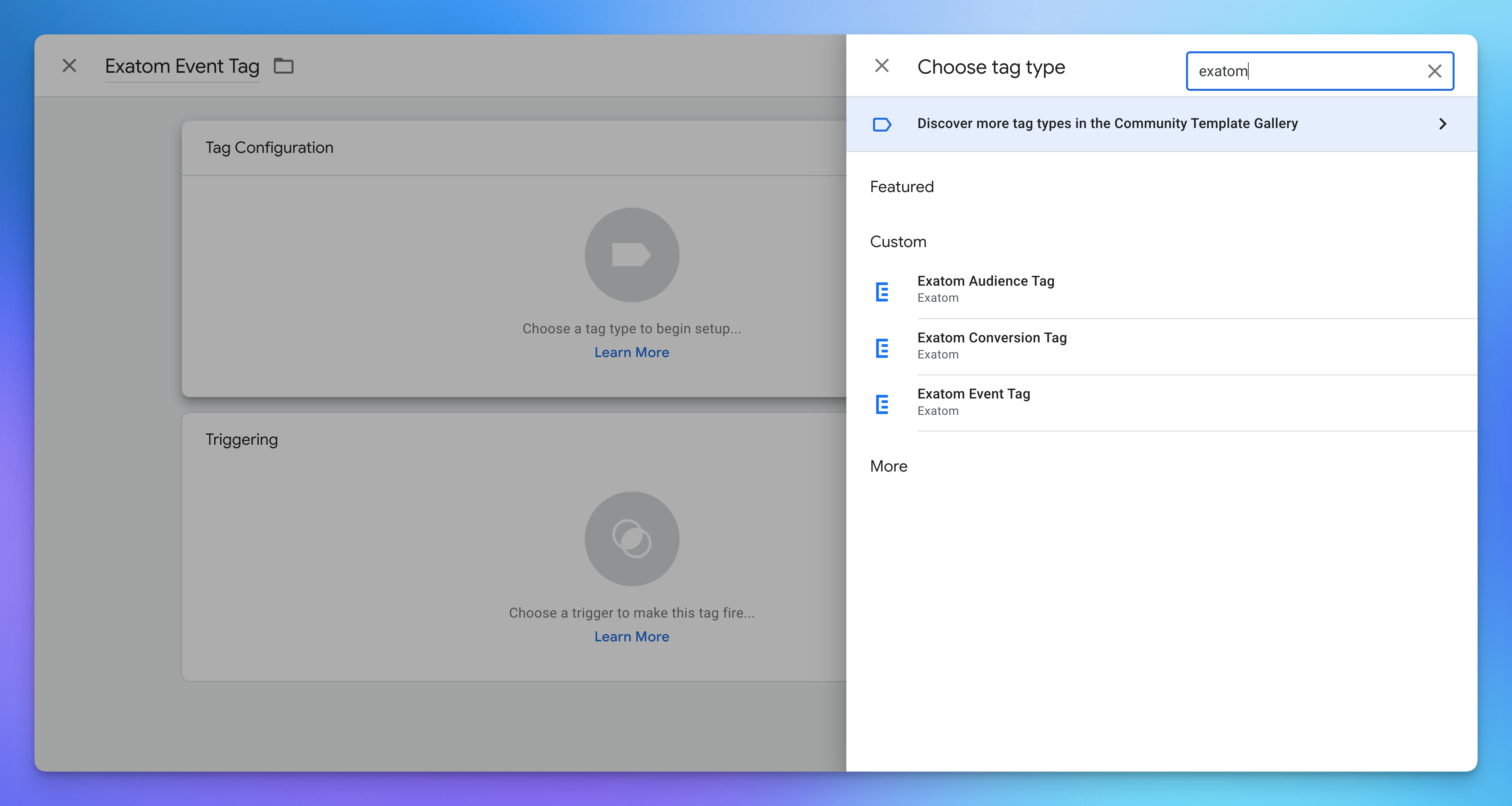 - For the Exatom Conversion tag: click Triggering → choose a trigger that defines the "Thank you" page for your form(s).